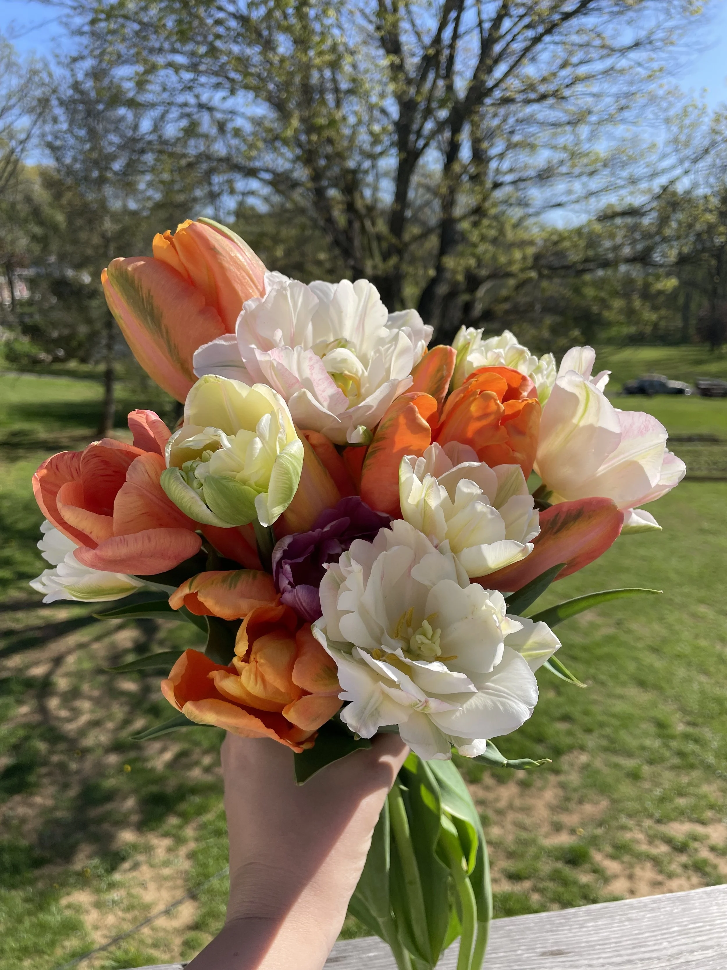 Beginning in April and ending in June, the Early Bloomer subscription offers a premium flower experience with one large, carefully designed bouquet delivered once each month—April, May, and June. The start of the subscription depends on when our first bloomers are ready, ensuring you receive the freshest, locally grown flowers. Subscribers enjoy fuller, more artfully arranged bouquets that are larger than our standard market offerings. If you have pets and prefer to avoid lilies, please let us know—we completely understand and will accommodate your needs. For those who want flowers more frequently, our market stand is often stocked and available for additional purchases. Exact pick-up details and timing will be provided as the Early Bloomer season begins.